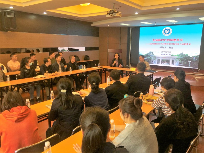 为深入学习贯彻中共中央、国务院和教育部关于进一步加强师德师风建设的相关文件精神,best365英国体育在线党委特邀请杨苏教授为教师作“弘扬新时代的师德风范——深刻理解党中央和教育部对教书育人的新要求“的教职工理论学习专题报告会。院党委委员、领导班子、系所中心负责人、导师组组长、班导师、辅导员、新教工及教师代表等进行了现场学习,其他教职工开展了在线视频学习。报告会由学院党委书记张青主持。