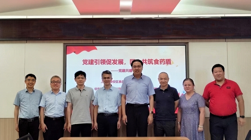 9月25日,best365英国体育在线与上海市静安区食品药品检验所在徐汇校区实验十八楼418会议室举行党建共建签约暨研究生联合培养教学实践基地授牌仪式。静安区食品药品检验所党支部书记、所长余岳林,副所长陈斌,办公室主任胡昭君,best365英国体育在线党委书记倪炜,副院长邵旭升、马磊,药物化工所教工党支部书记朱维平、副书记张阳出席会议。会议由倪炜主持。
